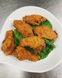 7 jumbo breaded fried shrimps served with cocktail sauce.