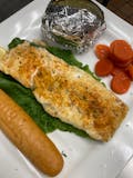 Grilled chicken breast topped with grilled mushrooms, onions, and peppers with mozzarella cheese. Served with potato.
